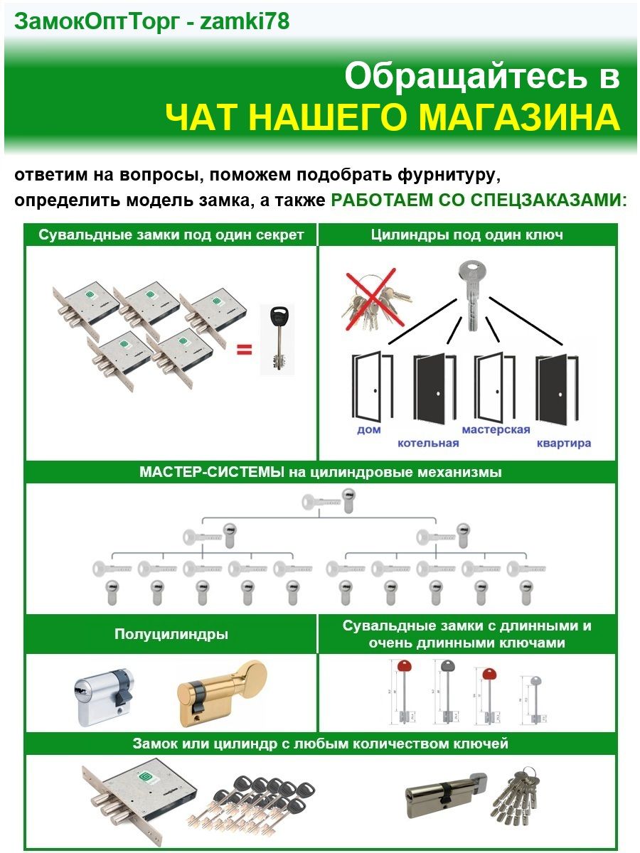 Цилиндровый механизм - 1 шт., Ключи - 5 шт., Паспорт (инструкция) - 1 шт., Винт для крепления цилиндрового механизма - 1 шт.