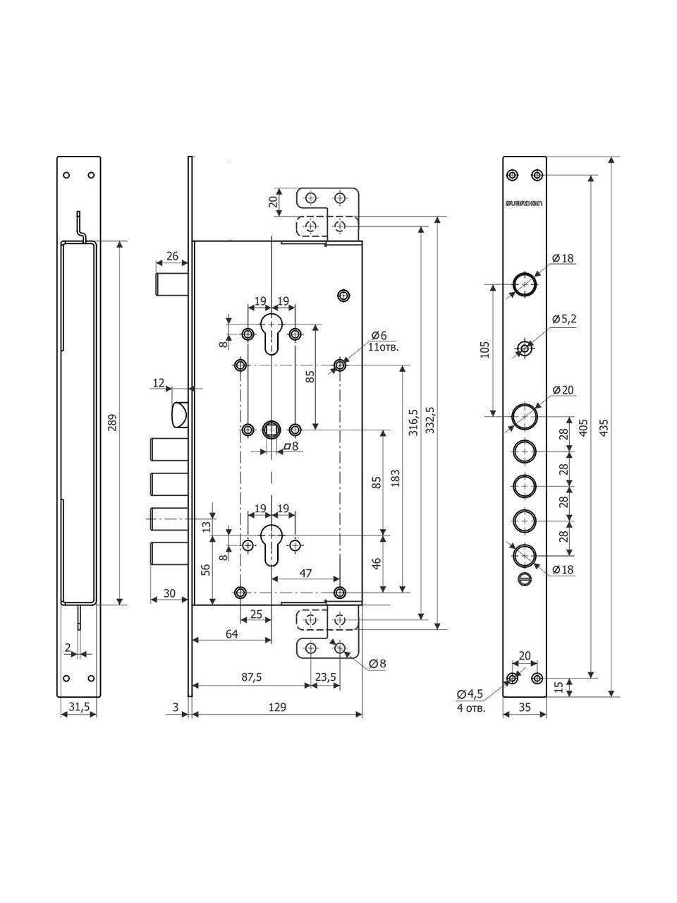 Отверстия для крепления врезной броненакладки на цилиндровый механизм.